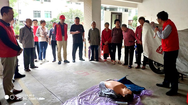 虽然活动当天天公不作美,下起了绵绵春雨,但闻讯而来的小区居民早早到达活动现场,提前排好队等候专家们的到来。下午3时许,义诊宣教活动准时开始。专家党员们为群众免费提供血压测量、体格检查、健康咨询等,科普老年人常见病、慢性病的预防知识,增强老年人预防疾病、自我保健的意识。急救专家龚幼平同志还为现场群众进行了实用的急救知识培训,详细讲解、示范异物卡喉、心脏骤停等急症的紧急处理方法与抢救步骤,为群众普及急救知识,提升群众的抢救技能。