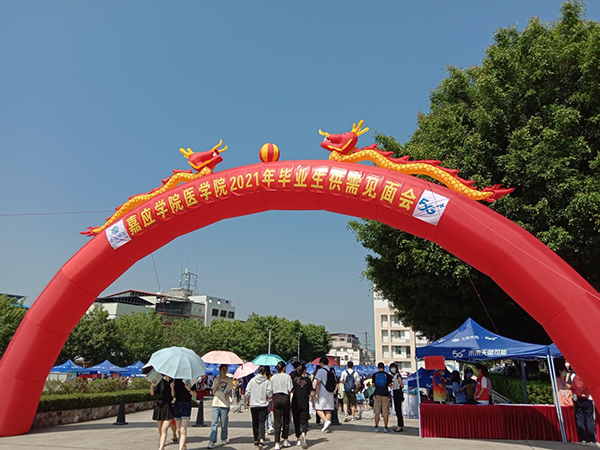 4月23日,学院在广场成功举办2021届毕业生供需见面会,来自梅州本地、潮汕地区、珠三角、粤西和省外的96家单位参会,其中医院69家,医药公司等27家,不乏三级医院、县级医院和知名医药公司等优质单位,共提供岗位2368个。2021届我院共有毕业生1238人,其中本科589人,专科649人,毕业生与参会单位招聘人员进行深入交流,500多人次投递简历,其中约250人与用人单位达成较明确的就业意向,6名临床医学专业本科毕业生与蕉岭县人民医院等单位现场签约、入编。