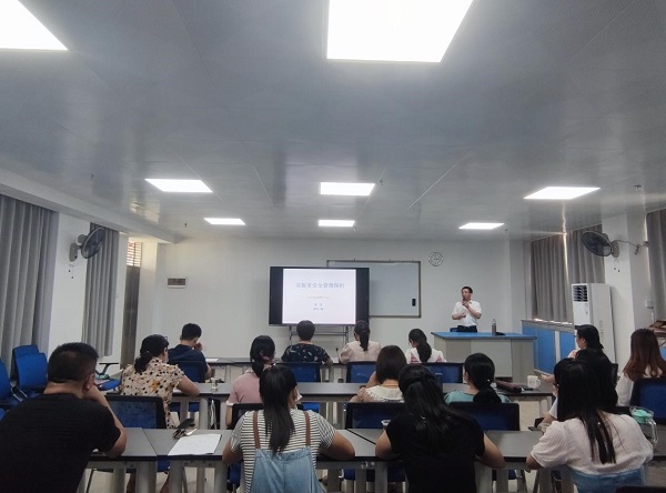 为落实“嘉应学院医学院关于全面开展安全隐患大排查的通知”(嘉院医函[2021]号)文件精神。教学部门于6月16日下午在基础部多功能学习室组织全体实验室管理人员和实验员开展实验室安全管理知识学习,由药学系实验教学中心梁香副主任作题为“实验室安全管理探析”专题讲座,讲座从实验室EHS管理体系,药学系实验教学中心日常管理工作和实验室安全管理工作等方面进行分享,内容较丰富,结合实际,可借鉴性、操作性较强。
