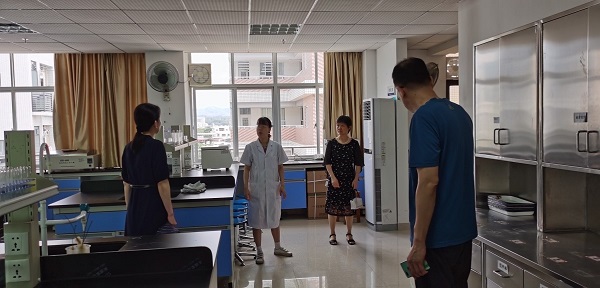 为落实“嘉应学院医学院关于全面开展安全隐患大排查的通知”(嘉院医函[2021]号)文件精神,压实安全管理责任,全面排查实验室的各类安全隐患,6月18日杨宇辉副院长带领教务科负责人深入临床技能中心、现教中心计算机房、公共部化学试验室、基础医学实验教学中心、药学系实验教学中心和护理系实验室等实验教学场所开展安全隐患集中排查。通过听取实验室安全工作汇报、现场检查、查阅管理台账等,从实验室消防安全、用水用电、仪器设备管理使用、实验用物、实验试剂特别是易燃易爆、危险化学试剂存管、使用流程及警示标识等进行全面排查,对存在的问题及时指出并提出了整改建议和要求。