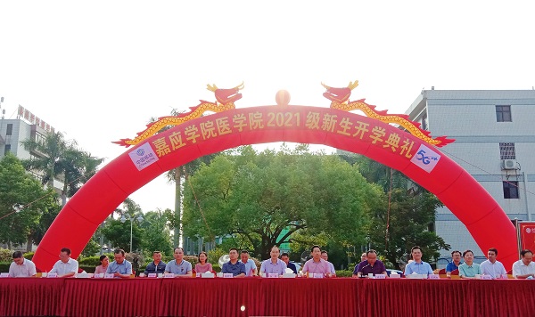 9月6日上午,我院在小广场隆重举行2021级新生开学典礼。出席典礼的领导有嘉应学院袁铎副校长、梅州市卫生健康局罗清华副局长、梅州市人民医院张国标副院长、中山大学附属第三医院院长助理李俊,嘉应学院教务处领导,学院党政领导、部分中层干部、各系(部)支部书记、辅导员、新生班班主任,以及来自全省各市和贵州、江西两省的 1360名新生参会。典礼由学院党委书记钟念军主持。