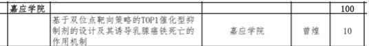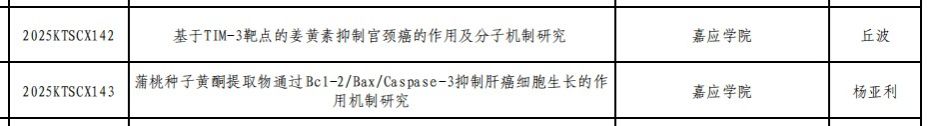 曾煌博士主持的《基于双位点靶向策略的TOP1催化型抑制剂的设计及其诱导乳腺癌铁死亡的作用机制》项目,列入2026年度广东省自然科学基金拟立项名单,该研究目标设计新型抗癌药物并揭示其作用机制,探索肿瘤治疗新方向。在2025年度广东省普通高校特色创新类项目中,丘波博士的《基于TIM-3靶点的姜黄素抑制宫颈癌的作用及分子机制研究》和杨亚利博士的《蒲桃种子黄酮提取物通过Bcl-2/Bax/Caspase-3抑制肝癌细胞生长的作用机制研究》获得立项,两项研究均着眼于天然药物的现代化开发,为抗癌药物研发提供了新的思路。