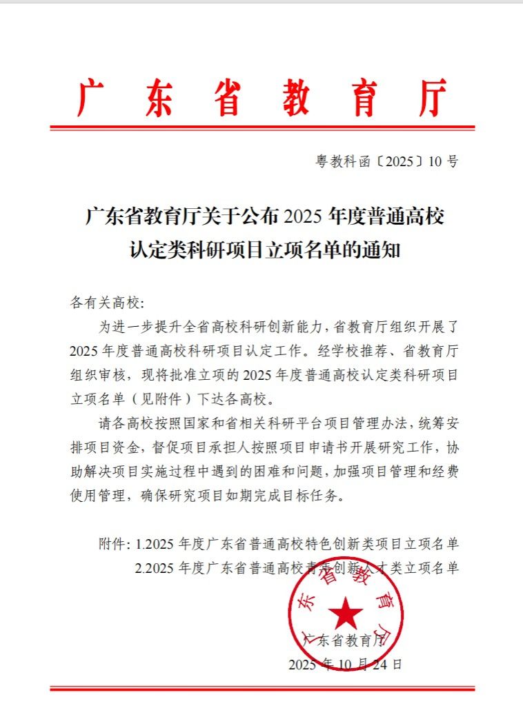 近日,广东省基础与应用基础研究基金及省教育厅相继公布项目评审结果,我院共有3项课题获得立项资助。