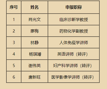 今年学院肖光文、廖梅、翟明、林大都、林静、钟娜娜等6位同志申报高一级职称,谢伟英、唐新旺、杨琪璿等3位同志申报同级转评职称,根据《关于做好我校2020年职称评审工作的通知》要求,经会议讨论决定推荐肖光文、廖梅、林静等3位同志申报高一级职称,推荐谢伟英、唐新旺、杨琪璿等3位同志转评高校讲师。现对其基本情况公示如下(见附件),公示时间从1月14日至22日止(为期7个工作日)。同时,申报人员的材料在学院人事科集中,欢迎我院教师前来查阅。若对上述6位同志今年申报职称有异议,请电话或书面向学校下列单位反映。反映情况时要自报或签署真实姓名,要有具体事实;不报或不签署真实姓名的,以及不提供具体事实材料的,一律不予受理。