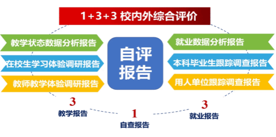 新一轮审核评估构建了“1+3+3”校内外综合评价体系,充分利用各类数据报告让评估手段更加立体多元、评估结果更加客观准确。自评报告由学校撰写,其他6份报告由教育部出具。