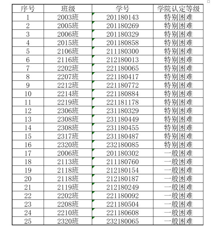 | 2024年春季学期学生家庭经济困难认定动态调整结果 |